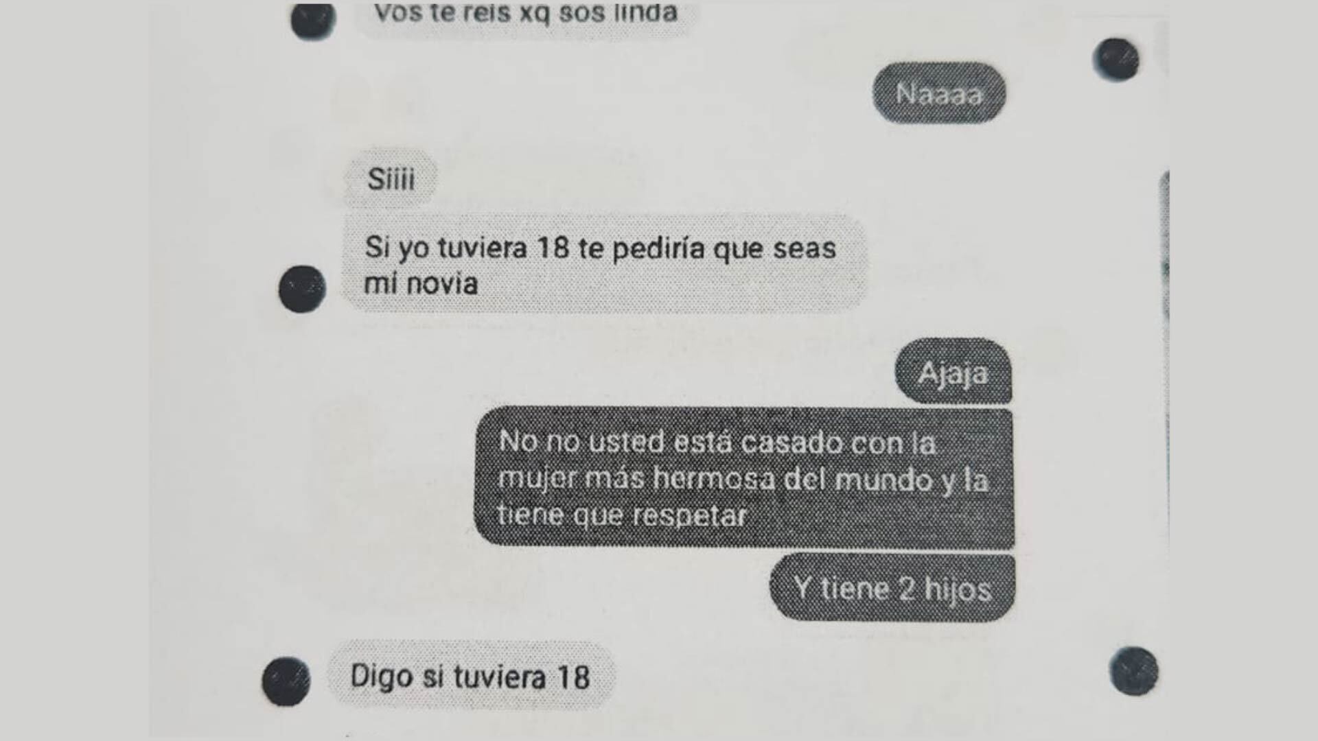 Por Facebook, fue aún más lejos en su presunta fantasía. “Si yo tuviera 18, te pediría que seas mi novia”, le sugirió. “No, usted está casado con la mujer más hermosa del mundo y la tiene que respetar”, respondió la menor. Entonces, la madre fue y denunció el caso.