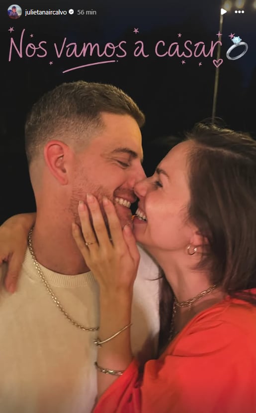 La actriz Julieta Nair Calvo sorprendió a sus seguidores en redes sociales al mostrar el emotivo momento en que su pareja, Andrés Rolando, le propuso matrimonio en una playa, acompañados por su familia y amigos.