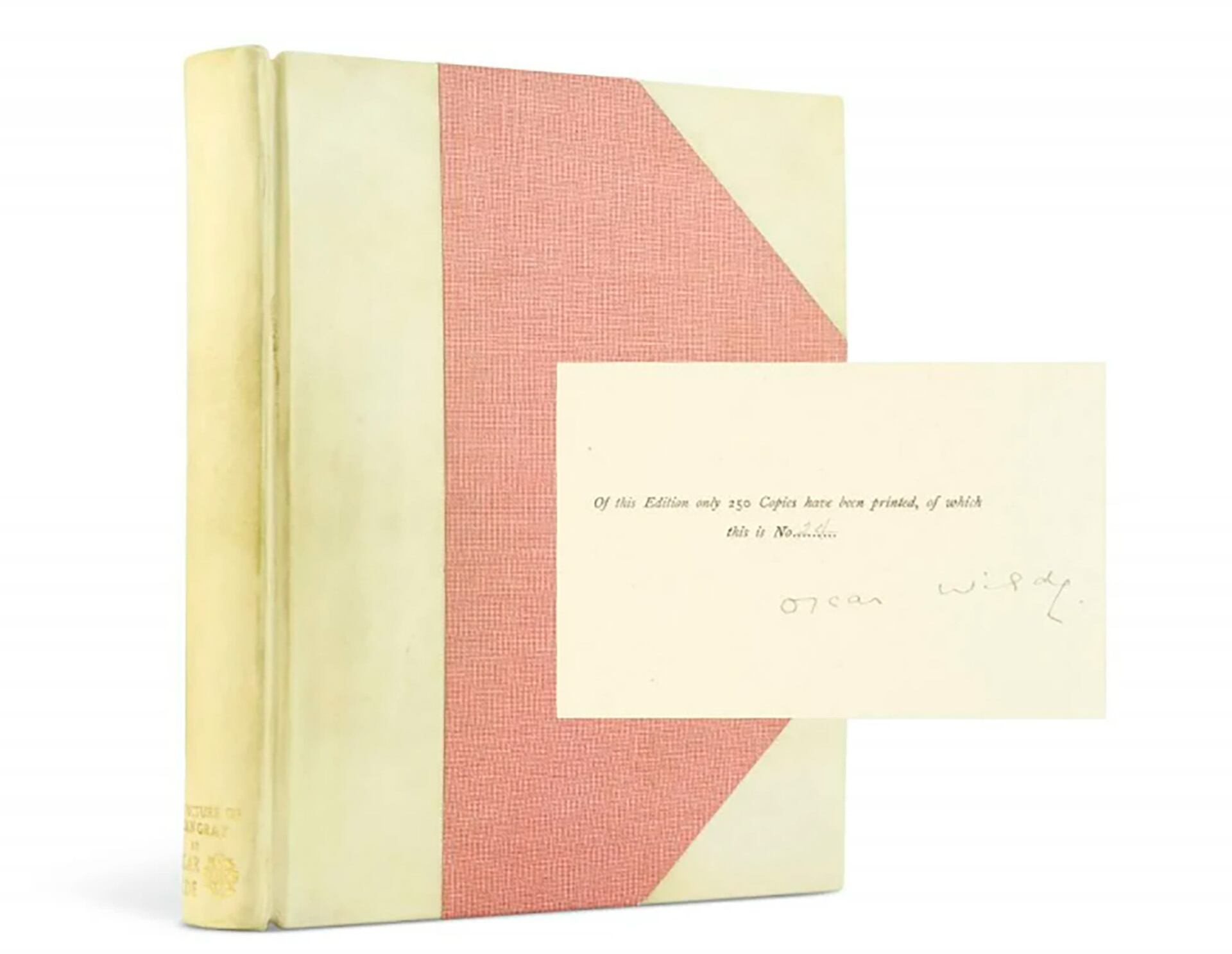 En la selección de volúmenes sobresale una edición de 1891 de El retrato de Dorian Gray, firmada por Wilde y valorada entre £12.000 y £18.000 (USD 16.150–24.235), así como una página manuscrita del ensayo “Sobre el papel del artista”, acompañada por una carta de André Gide regalando el documento, cuyo precio estimado va de £15.000 a £25.000 (USD 20.190–33.660). Otra pieza notable es la primera edición de Salomé, dedicada en francés por Wilde al poeta Stuart Merrill, también estimada entre £15.000 y £25.000.