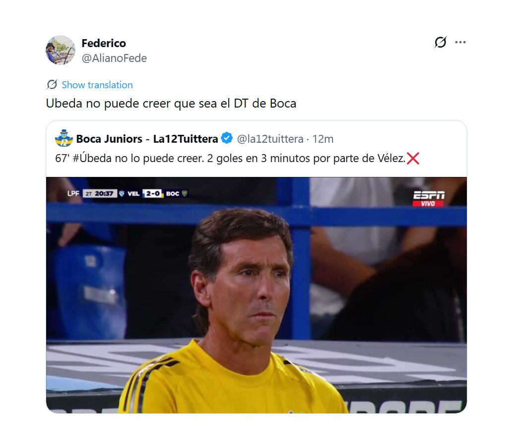 Yo viendo al boca de Ubeda comerse un baile contra Vélez pero acordándome del baile que nos comimos de local con Tigre pic.twitter.com/EVBOxALqOR