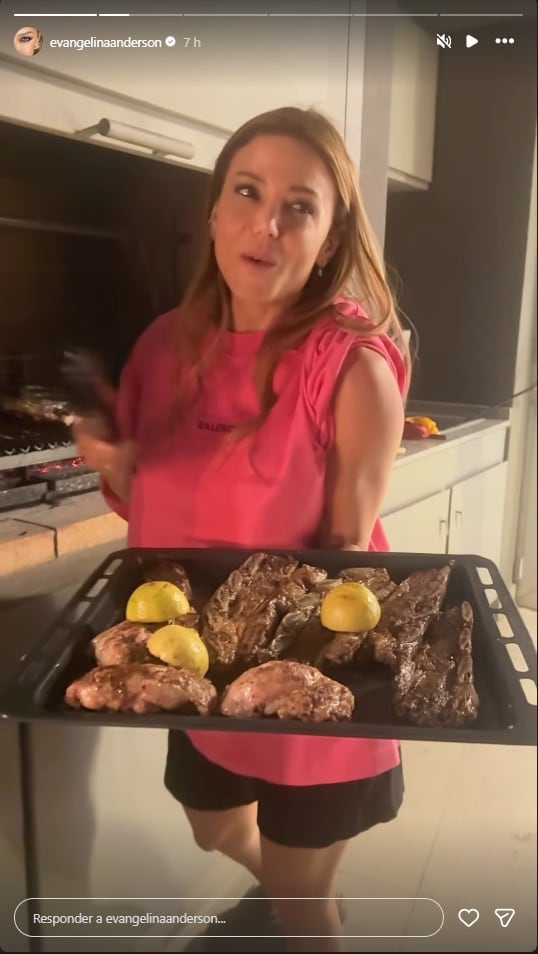 Evangelina Anderson se luce preparando un auténtico asado argentino en la comodidad de su hogar, compartiendo sus dotes culinarias con sus seguidores.
