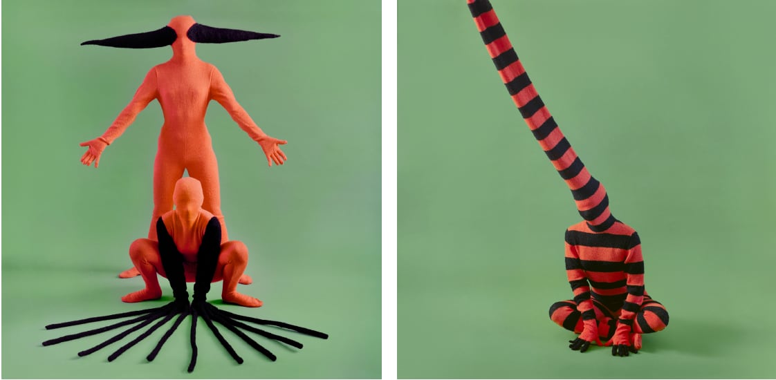 Sus piezas, que incluyen fotografías de performances y esculturas blandas textiles, transforman el textil en “territorio activo”: extensión mutable del cuerpo que se pliega y se activa en el movimiento, detonando situaciones donde lo corporal se funde con la arquitectura y el espacio.