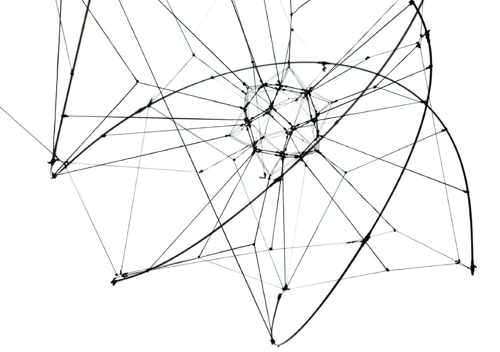 Por su parte, las vitrinas de telaraña de Saraceno (San Miguel de Tucumán, 1973) abren la escala de la exhibición hacia una dimensión que es, a la vez, microscópica y astronómica. En las estructuras tejidas por arañas se materializa un sistema de interdependencia, donde la fragilidad esconde una complejidad de tensiones y equilibrios.