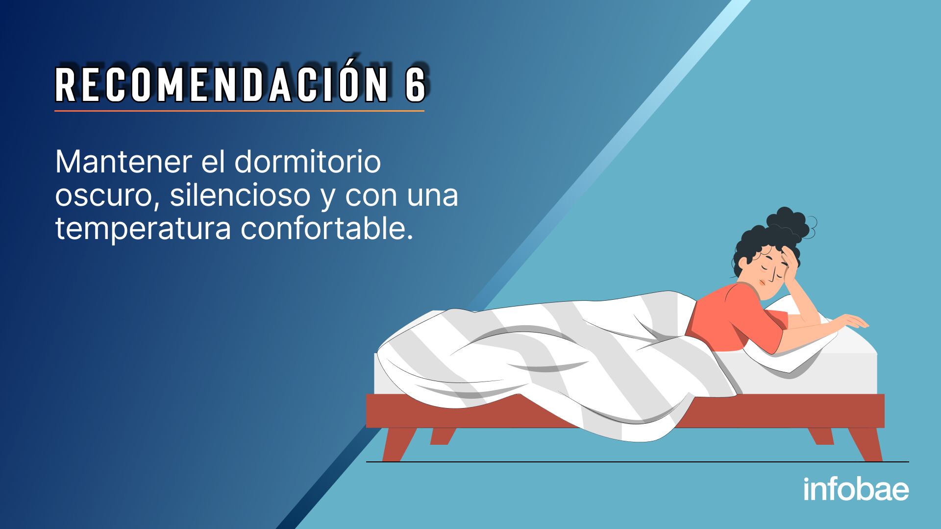 Mantener el dormitorio oscuro, silencioso y con una temperatura confortable, y reservar la cama principalmente para dormir para reforzar la asociación entre ese espacio y el descanso.