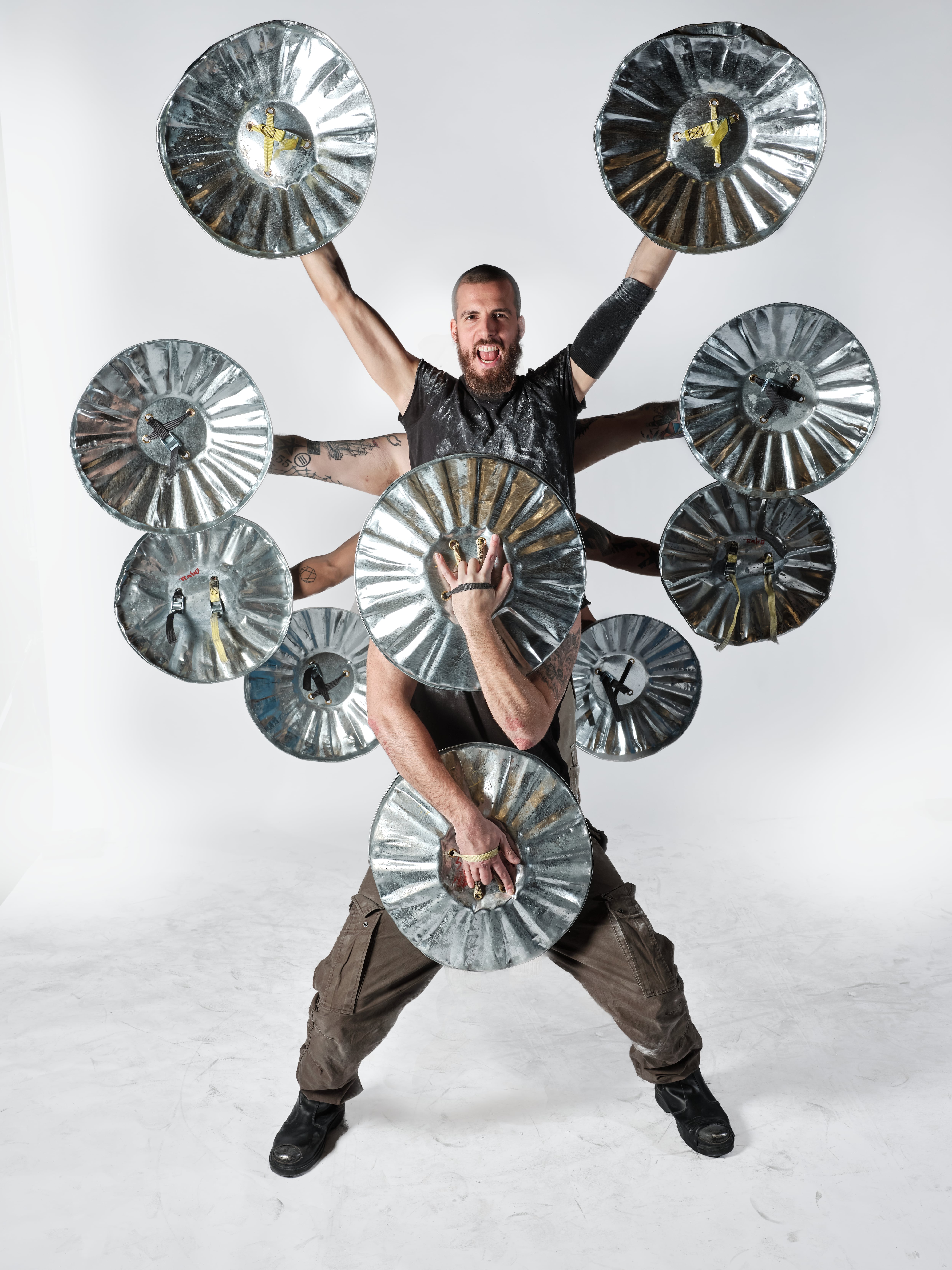 —Es una combinación de muchos factores. Mucho del humor surge naturalmente al trabajar juntos. Cuando desarrollamos una nueva rutina, buscamos siempre algo excelente, aunque a veces los intentos fallidos resultan cómicos. Admiramos la comedia física, el movimiento y el ritmo. Cuando realizamos audiciones, buscamos gente con una mentalidad abierta y capacidad de adaptación. El espectáculo no es solo percusión. Debe conectar realmente con la gente.